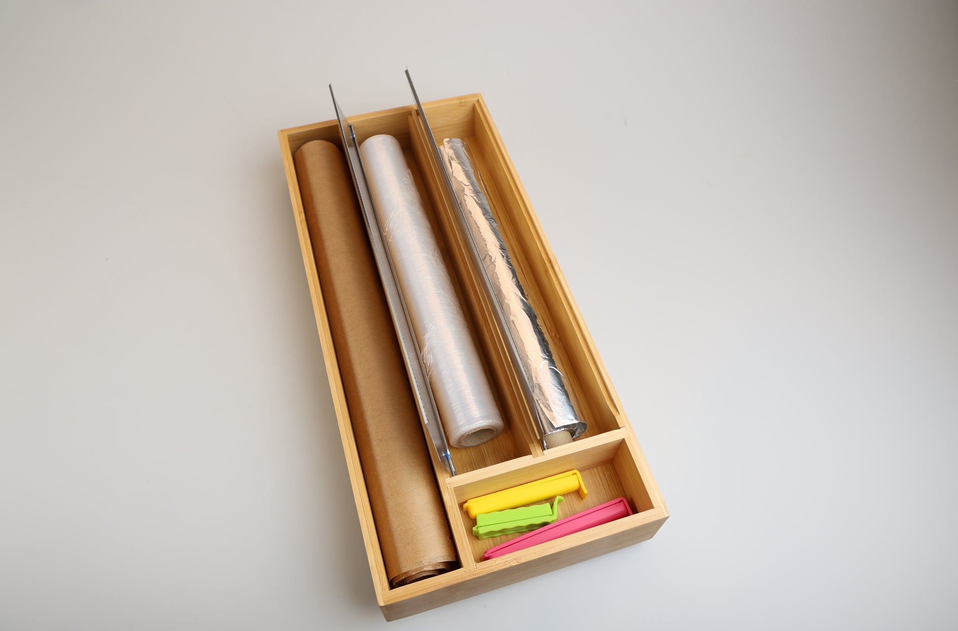 Verabschiede dich von überfüllten Schubladen mit dem Lunarfoil Folienspender. Die scharfen Kanten dieses Spenders, der für alle gängigen Größen von Folien geeignet ist, machen das Schneiden von Folien zu einem reibungslosen und mühelosen Prozess. Er ist aus langlebigem, umweltfreundlichem Bambus gefertigt und bietet die perfekte Kombination aus Funktionalität und Stil für eine gut organisierte Küche.