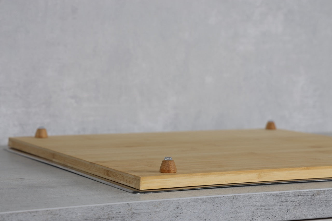 Mach deinen Herd zur Multifunktionsfläche mit der Schneide- und Abdeckplatte Eclipse. Diese nachhaltige Bambusplatte schützt deinen Herd vor Kratzern und bietet zusätzlichen Arbeitsbereich für alle Schneide- und Kochvorbereitungen. Sie passt auf handelsübliche Herdgrößen und verbindet praktischen Nutzen mit natürlichem Design.
