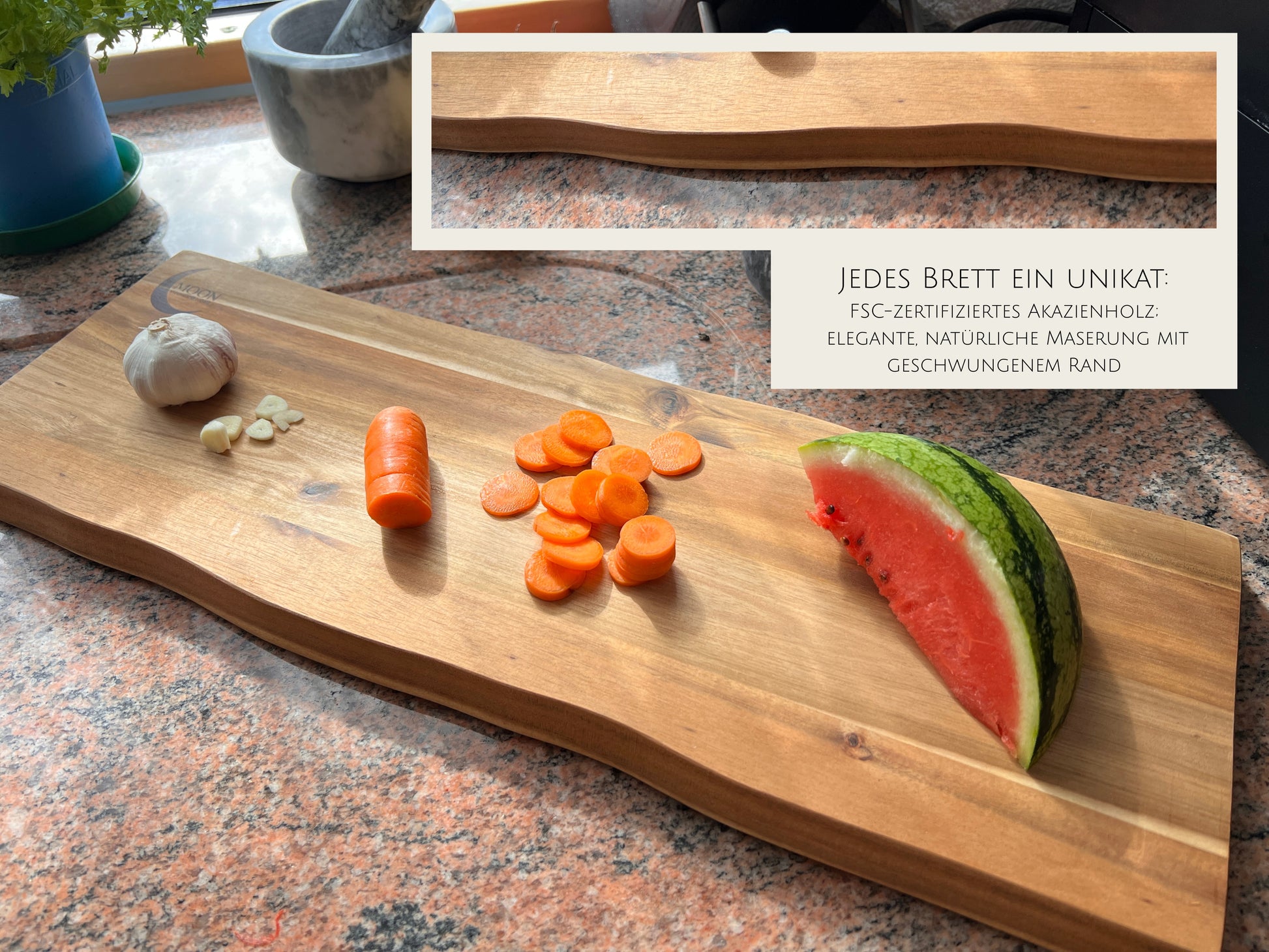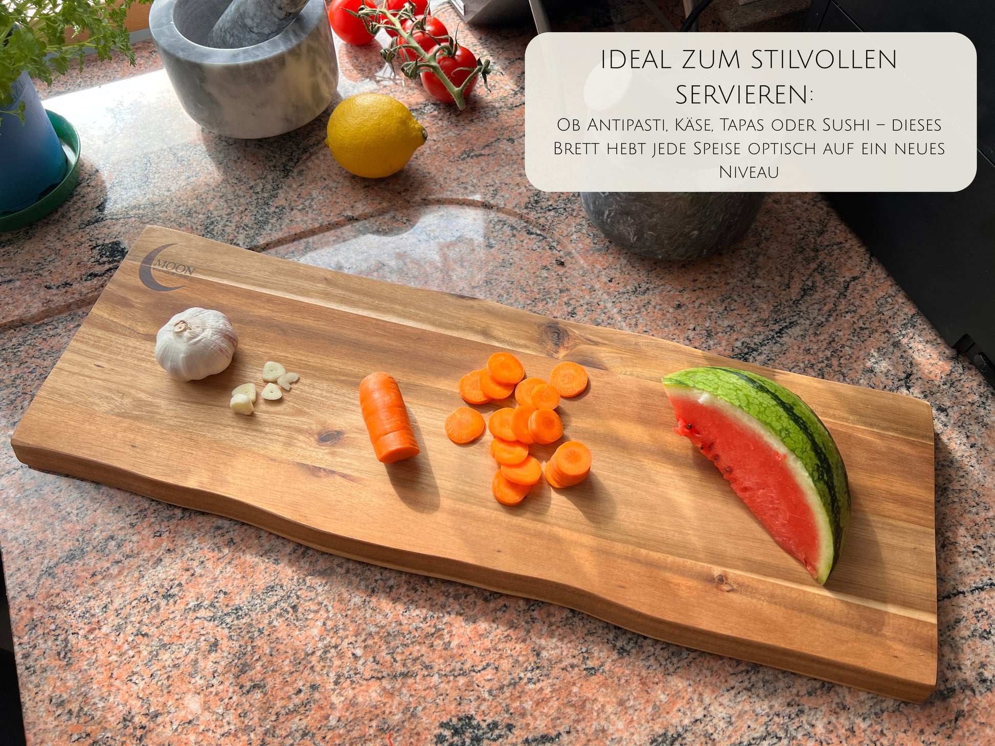 Das Schneidebrett Mars vereint Funktionalität und Eleganz und ist der perfekte Helfer in deiner Küche. Egal ob Fleisch, Gemüse oder Fisch - dieses Brett aus nachhaltigem Akazienholz ist vielseitig einsetzbar und überzeugt durch seine einzigartige Naturform. Es eignet sich nicht nur ideal zum Schneiden, sondern auch zum stilvollen Servieren verschiedenster Speisen.