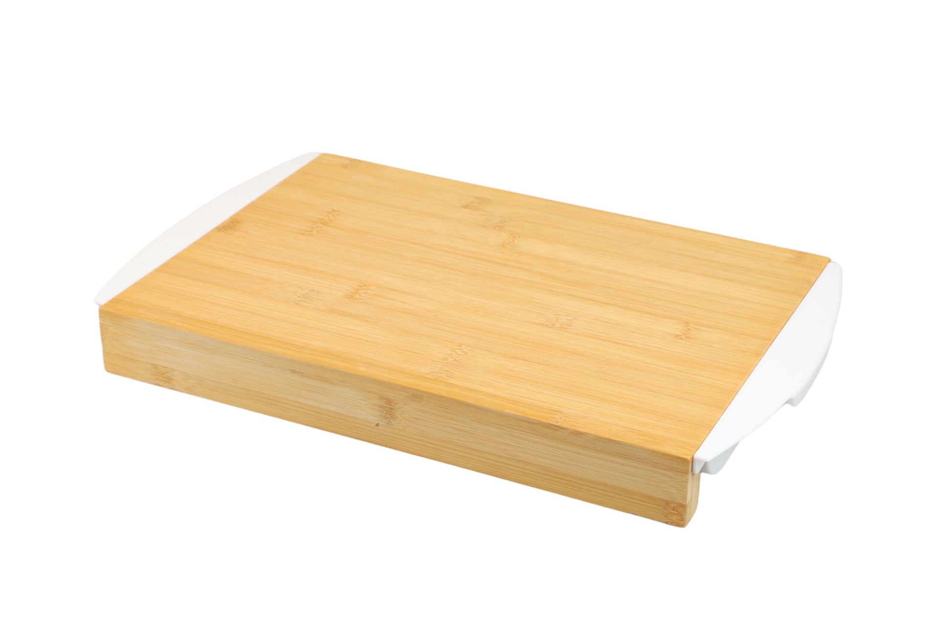 Das Schneidebrett Landing Pad macht sauberes Arbeiten in der Küche einfacher denn je. Mit seiner großzügigen Bambusfläche bietet es reichlich Platz zum Schneiden und Zubereiten. Das Highlight sind die zwei schwarzen Auffangschalen, die direkt unter das Brett geschoben werden. So kannst du Schnittgut oder Abfälle ganz einfach hineinschieben. Während die Bambusfläche nicht spülmaschinengeeignet ist, lassen sich die robusten Kunststoffschalen bequem in der Spülmaschine reinigen.