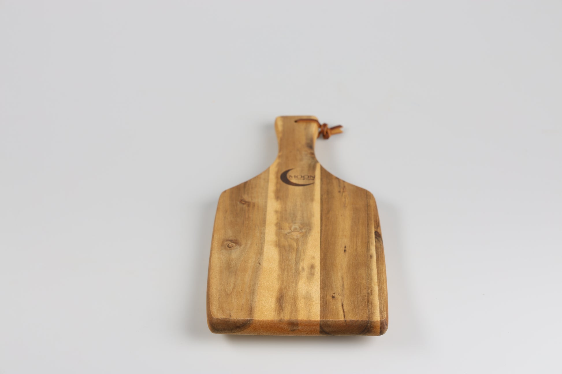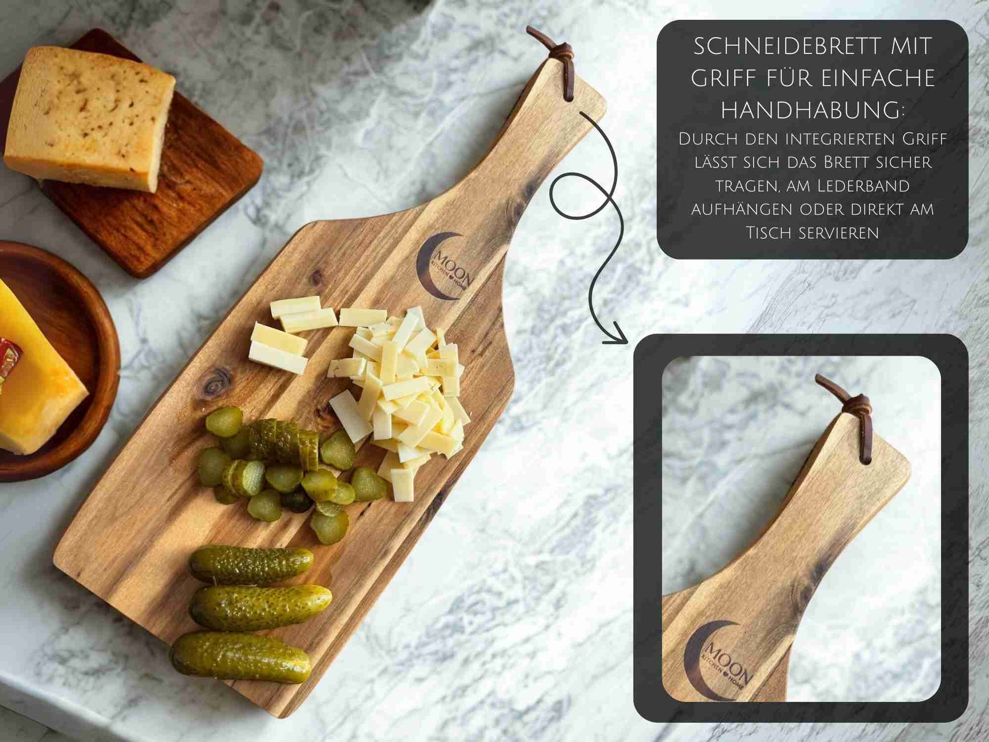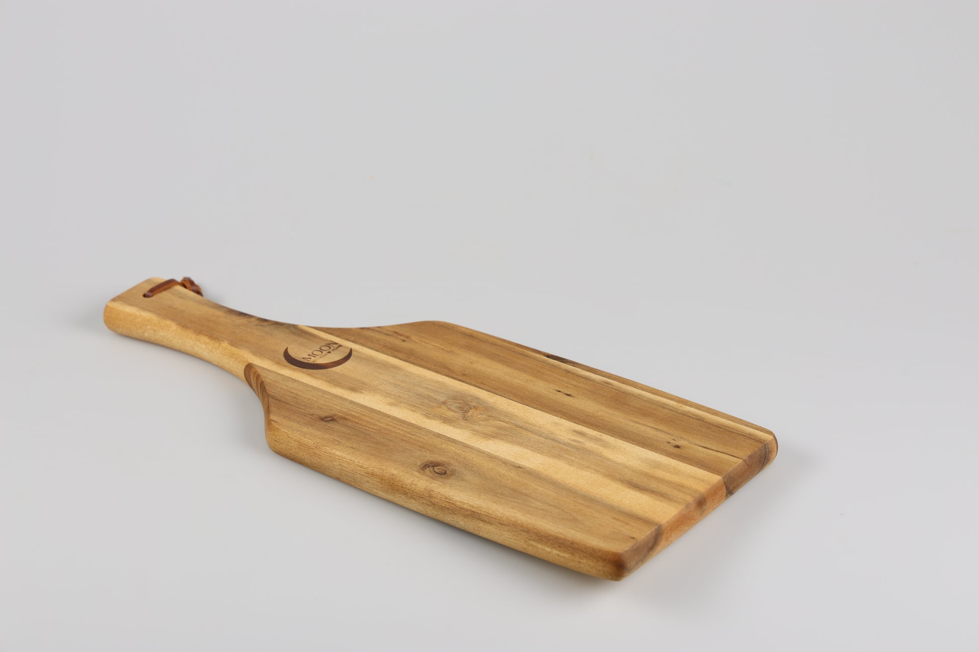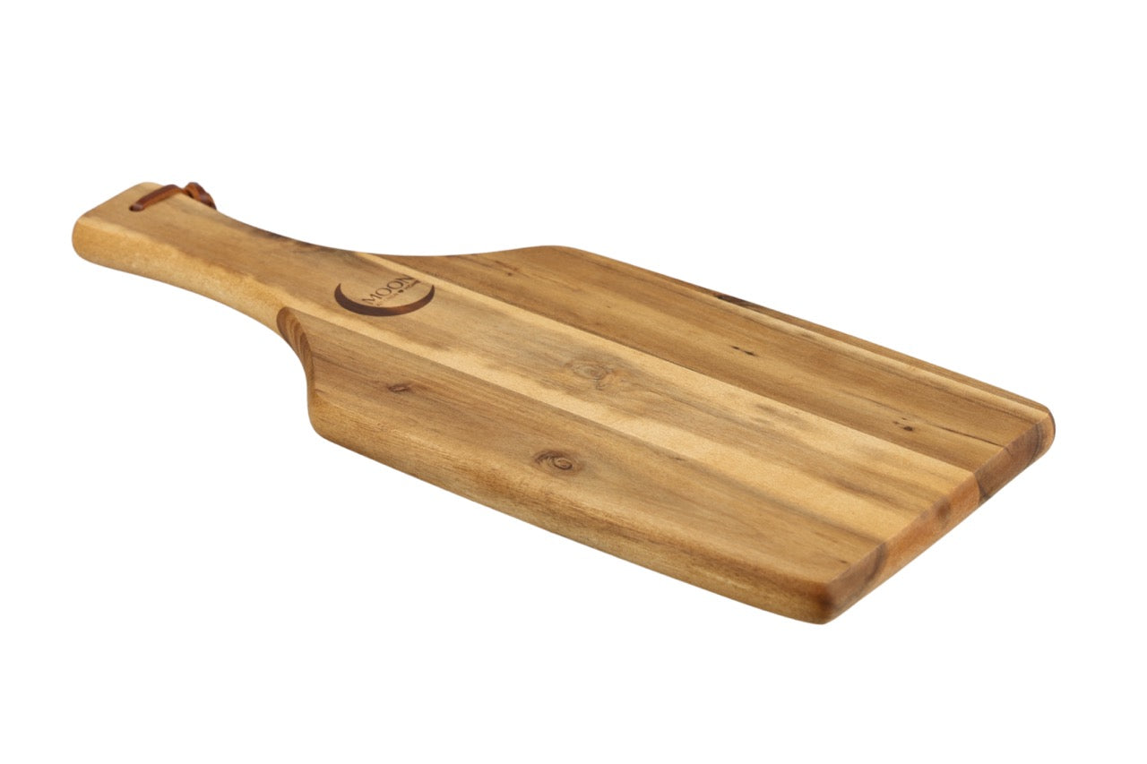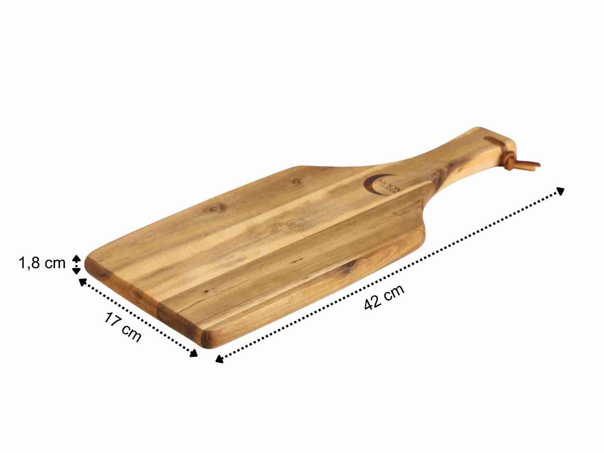 Das Pluto Servierbrett aus wunderschönem Akazienholz vereint Funktionalität mit einer besonderen, fast flaschenartigen Form, die jeden Tisch stilvoll ergänzt. Ideal zum Anrichten und Servieren von Snacks, Fingerfood und allerlei Köstlichkeiten, eignet es sich auch als stabiles Schneidebrett. Mit einem eleganten Lederband zum Aufhängen ist das Brett nicht nur praktisch, sondern auch ein optisches Highlight für jede Küche.